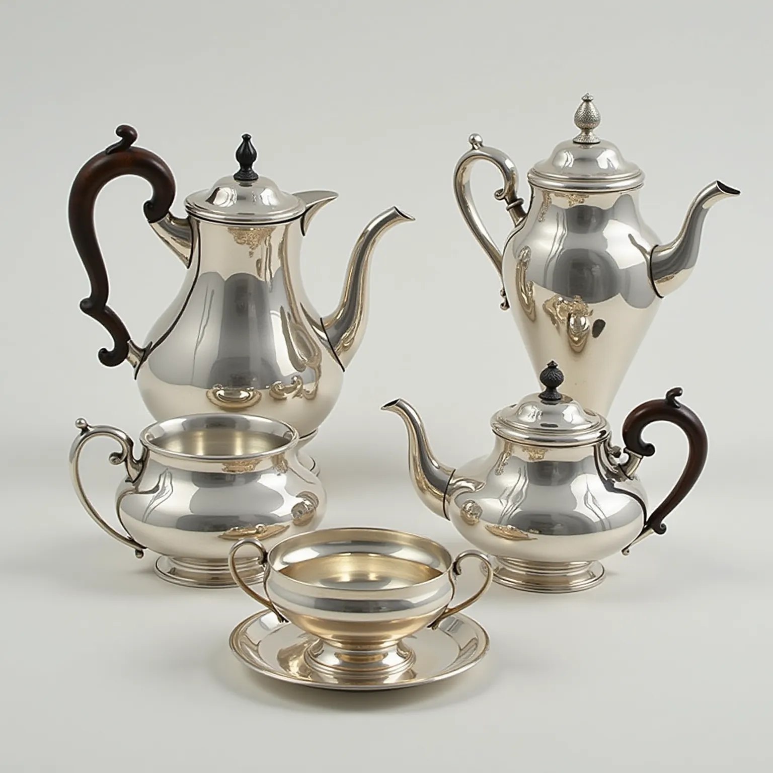 - Стили: Каждый исторический период вносил свои особенности в дизайн серебряных кофейных сервизов. Барокко с его пышностью и вычурностью, рококо с изящными линиями и асимметрией, классицизм со строгой геометрией и лаконичностью – каждый стиль оставил свой след в истории серебряных кофейных сервизов.